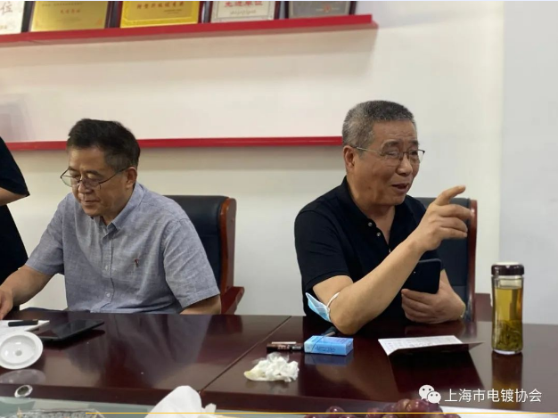 调研座谈会上,上海市电镀协会名誉理事长王国祥汇报了上海市电镀业产业链发展情况,他阐明电镀为各种工业产品提供了防护性,装饰性和功能性镀层,在国民经济各个行业中具有不可替代的作用,结合上海产业结构的调整和提升,特别是专业电镀企业在工艺装备、资源利用、能资源和水的消耗、污染产生和治理、环保管理有了较大的提升。行业内企业发展靠自身,坚持通过突破新技术,努力赢得市场青睐,坚持技术和产品创新,积聚能量,赢得发展。