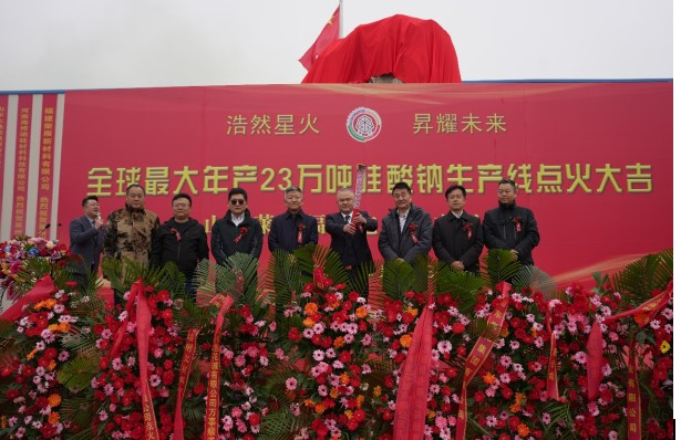 中国无机盐工业协会会长王孝峰、山东海化集团有限公司、三菱商事(中国)商业有限公司、德国赢创工业集团青岛分公司、美国达拉斯(青岛)特种吸附剂有限公司、淄博颐丰水玻璃有限公司等六位国内外嘉宾,中国无机盐工业协会无机硅化物分会会长、莱州福利泡花碱总经理于浩然一起共同为企业点燃了象征希望与未来的火炬。来自国内外客户代表、社会各界宾朋好友、有关部门负责人及项目承建方代表共100余人共同见证了点火仪式。