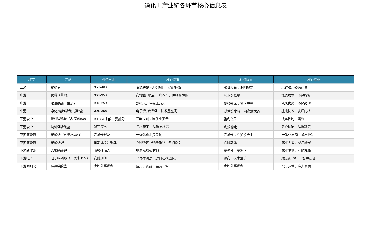 从产业链价值提升路径来看,磷矿石加工环节的技术难度与价值倍数呈显著正相关:传统路径加工为肥料级磷铵价值仅提升2-3倍,而加工为磷酸铁锂价值跃升8-10倍,半导体级电子级磷酸价值更是提升20-30倍,成为企业布局重点。湿法磷酸作为主流加工工艺,成为衔接磷矿石与高端产品的核心环节,云天化、川恒股份、兴发集团等企业已完成该工艺与新能源产品的一体化布局。