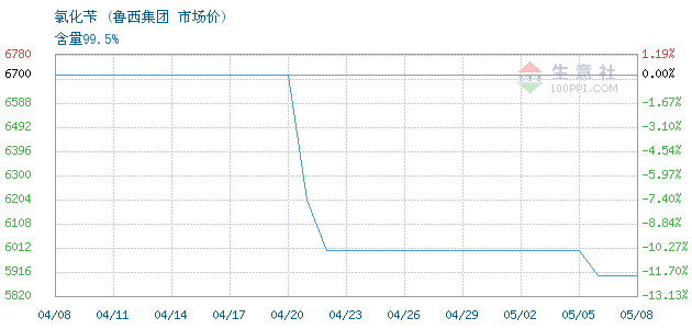 今日含量99.5%氯化苄市场价5900元/吨,较2020-04-30的6000元/吨下降100元/吨。持续一周稳定保持中。济南金日和化工有限公司提供报价。