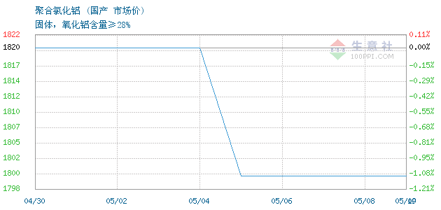 今日国产聚合氯化铝(氧化铝含量≥28%)固体:市场价1800元/吨,从2020-04-30以来的1820元/吨。有一定的降价趋势。巩义市宜家净化材料有限公司提供报价。