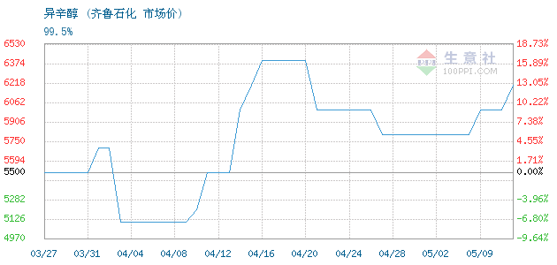 今日99.5%异辛醇市场价6200元/吨。自2020-3-30日以来5500元/吨,最低到过4970元/吨,最高6374元/吨。波动很大,起浮不定。济南金日和化工有限公司提供报价。