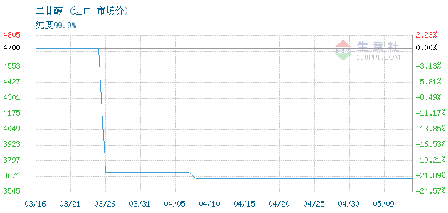 今日进口二甘醇纯度99.9%市场价3650元/吨