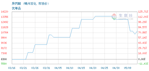 今日异丙醇优等品市场价11000元/吨,从三月份的6300元/吨到4月底的13000元/吨,涨幅很大,近几日有所下降,但也是逐步下降。济南金日和化工有限公司提供报价。