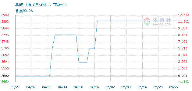 今日含量99.9%草酸终端零售价4.7-4.9元/公斤,出厂价3900元/吨。