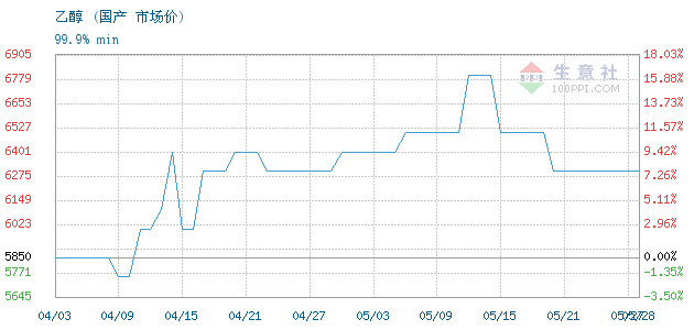 今日含量99.9%无水乙醇终端零售价7.7-7.9元/公斤,出厂价6300元/吨。