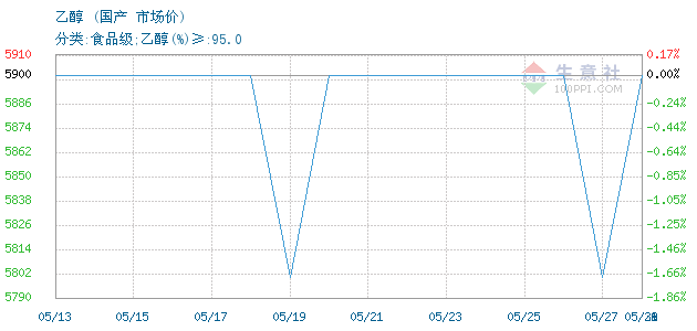 今日食品级乙醇(%)≥95.0终端零售价7.08-7.4元/公斤,出厂价5900元/吨。