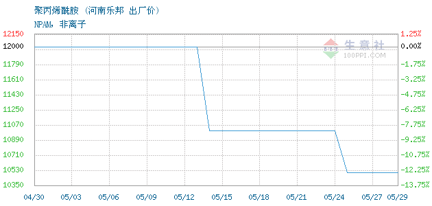 今日NPAM 非离子聚丙烯酰胺终端零售价12.1-12.6元/公斤,出厂价10500元/吨。