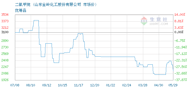 今日优等品二氯甲烷终端零售价2.6-2.7元/公斤