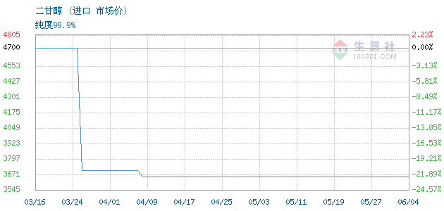 今日纯度99.9%二甘醇终端零售价4.4-4.6元/公斤,出厂价3650元/吨。