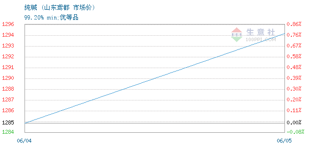 今日含量99.20% min优等品重质纯碱终端零售价1.6-1.62元/公斤,出厂价1295元/吨。