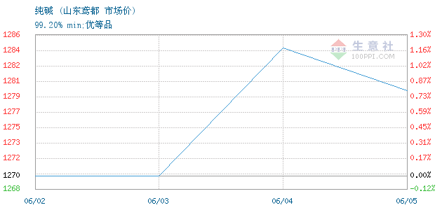 今日含量99.20% min优等品食品纯碱终端零售价1.54-1.6元/公斤,出厂价1280元/吨。