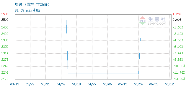 今日含量99.0% min片碱终端零售价3.4-3.6元/公斤,出厂价2400元/吨。