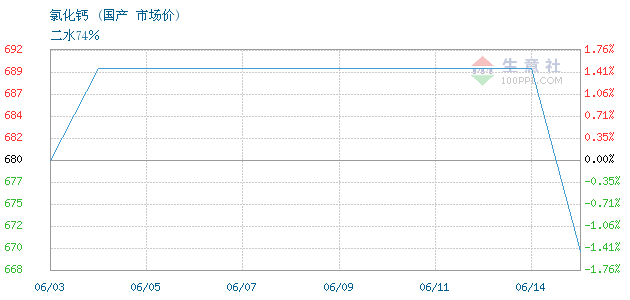二水含量74%氯化钙终端零售价0.9-1元/公斤,出厂价670元/吨。