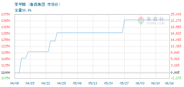 今日含量99.9%苯甲醇终端零售价16.2-16.9元/公斤,出厂价13500元/吨。