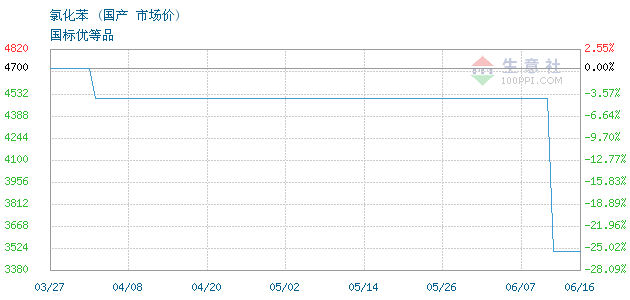 今日国标优等品氯化苯终端零售价4.7-5.1元/公斤,出厂价3500元/吨。