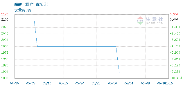 今日含量99.9%醋酸终端零售价2.7-2.9元/公斤,出厂价1900元/吨。