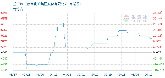 今日优等品正丁醇终端零售价7-7.3元/公斤,出厂价5400元/吨。