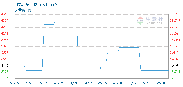 今日含量99.9%四氯乙烯终端零售价4.5-4.8元/公斤,出厂价3300元/吨。