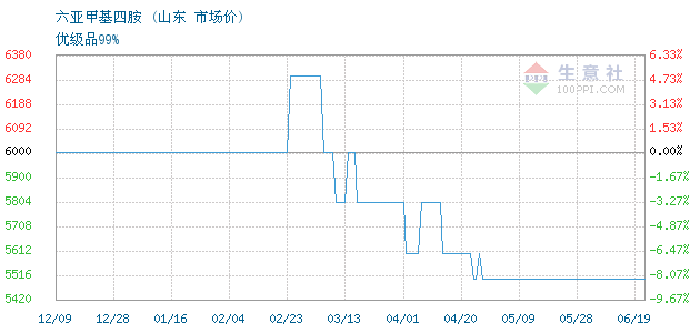 今日优级品含量99%六亚甲基四胺终端零售价7.2-7.4元/公斤,出厂价5500元/吨。