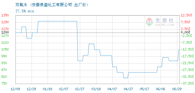 今日含量27.5% min双氧水终端零售价1.5-1.6元/公斤,出厂价1050元/吨。