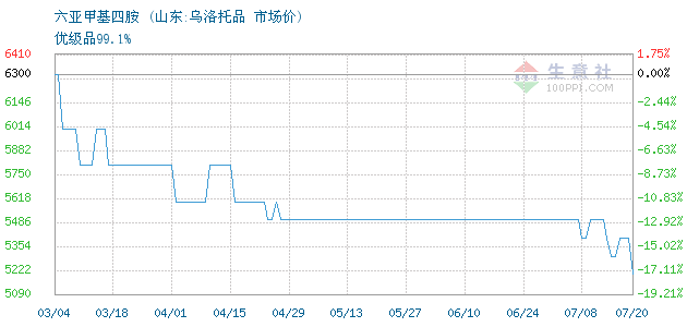 今日优级品含量99.1%六亚甲基四胺终端零售价6.8-7元/公斤,出厂价5200元/吨。价格平稳保持了两个月,7月价格不稳还有波动。