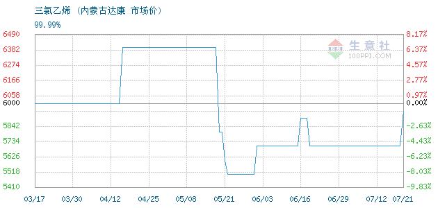 今日含量99.99%三氯乙烯终端零售价7.7-8元/公斤,出厂价5950元/吨。较昨日价格上涨,目测还有上涨空间,可根据需要适当购买。
