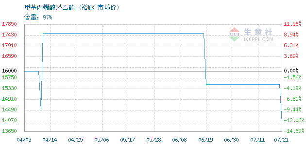 今日含量97%甲基丙烯酸羟乙酯终端零售价16.8-17.5元/公斤,出厂价14000元/吨。价格下降,可根据需求适当购买库存。