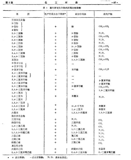 目前 , 对 氯代芳香族化合物 的厌氧 降解 已 作 了广 泛 的研究 , 其结果见表 。