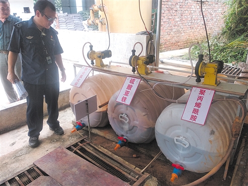 执法人员检查企业排水情况.本报记者 黎兆齐 摄