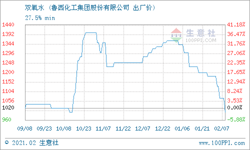据生意社监测:2月17日,鲁西化工产能100万吨双氧水装置正常开机,厂家27.5%双氧水报价1000元/吨,持稳,终端需求一般,鲁西化工双氧水行情弱稳。