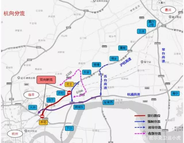 断流期间,上海方向车辆将利用杭州绕城高速北线(大井枢纽、乔司枢纽、下沙枢纽)、杭浦高速绕行分流;杭州方向于沈士枢纽实施主线卡口断流,并将视情况对G60沪昆高速长安、桐乡、屠甸、王店互通及骑塘、嘉兴2号枢纽采取临时管控措施。