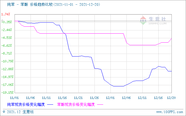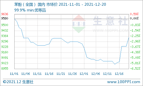生意社来看,目前卖方推涨情绪强烈,市场低价不出,预计12月下旬苯酚市场持续高位运作,华东苯酚市场报考价格在9400-9450元/吨。