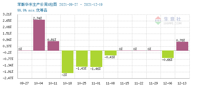 原料方面,纯苯山东地区炒涨下游即将有新增装置投产,市场商谈气氛积极,价格连续上涨至6850-6900元/吨高位,华东地区受带动跟随上涨,前半周纯苯连涨。然而随着纯苯价格连续上涨,下游抵触增强,跟进情绪回落,且下游装置并未如期投产,业者心态转为谨慎。听闻下周华东港口纯苯继续累库,库存压力进一步打压市场心态,后半周纯苯连跌。本周中石化纯苯价格上调150元/吨至6600元/吨(华北部分企业上调400元/吨)。