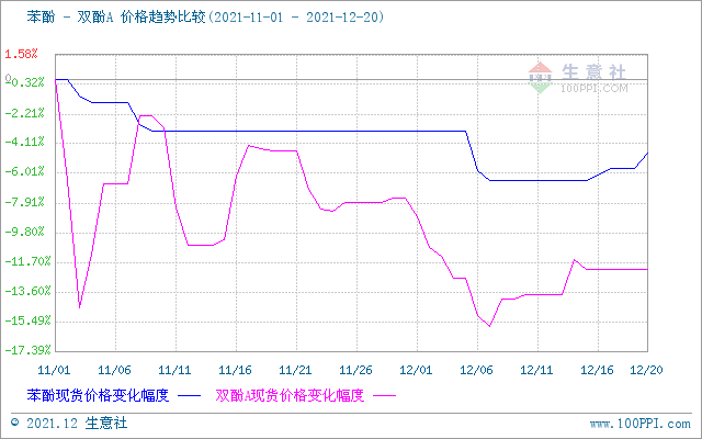 进入12月下旬国内双酚A市场窄幅波动,本周生产企业报盘平稳,部分工厂暂停报盘,中间商货源不多随行就市。当前主流华北和华东地区双酚A市场报盘在16100-16200元/吨,华北现货资源不多。华东某石化企业竞拍价格在14800元/吨(协议品)和14900元/吨(一等品)。
