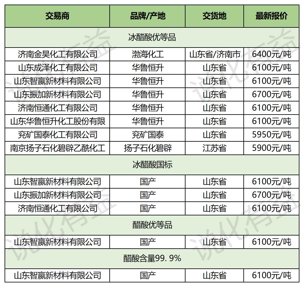 1月11日国内醋酸最新报价