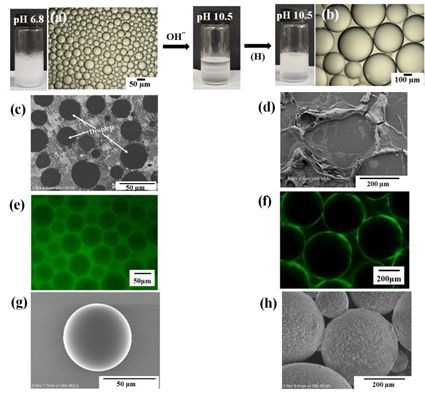 鉴于该乳状液能在oil-in-dispersion和Pickering类型间可逆转换,作者成功将其应用于聚合物微球的制备,分别得到具有光滑表面或嵌有颗粒的草莓状聚合物微球。本文为设计和开发适用于oil-in-dispersion乳状液的智能表面活性剂提供了新的思路,相关技术在乳液聚合、多相催化以及油品乳化运输等领域具有潜在的应用价值。