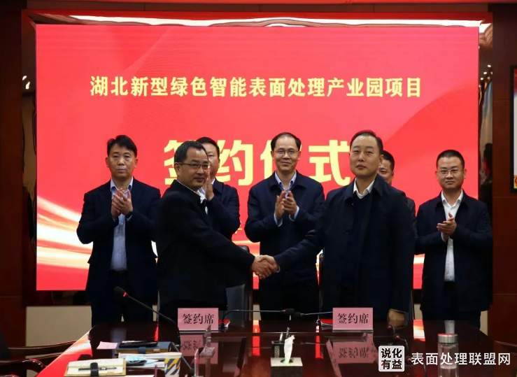 11月27日上午,湖北新型绿色智能表面处理产业园项目签约仪式在黄石市下陆区政府四楼会议室举行。据悉,该项目由湖北省生态环保有限公司投资,总投资10亿元,项目一次性规划,分两期建设,主要建设厂房、电镀废水处理中心、办公楼、配套服务中心、变电站等,园区总体规划生产线46条,设计污水处理能力6000吨/天,预计建成达产后可实现年产值10亿元,年税收5000万元。