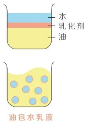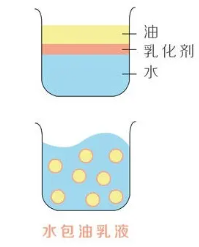 按照分散相的性质分,普通乳液可以可分为“水包油”(O/W)型乳液和“油包水”(W/O)型。