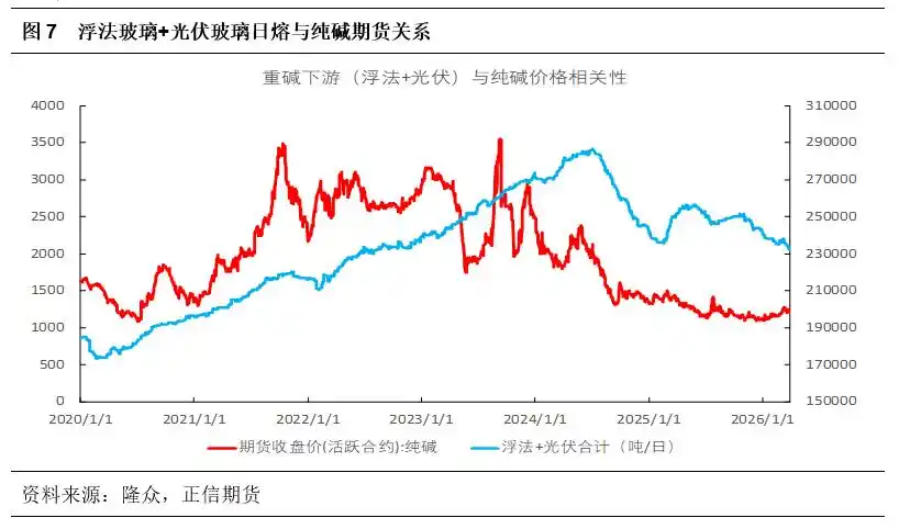 需求是价格长期表现的核心驱动力,纯碱需求端主要是浮法玻璃及光伏玻璃。近两年纯碱国内需求预期边际走弱,同时供应延续增量下,过剩状态显现。