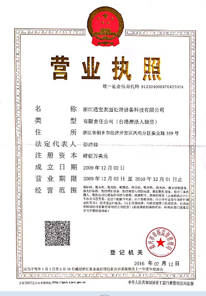 浙江通宝表面处理设备科技有限公司是一家致力于表面处理设备、磨料、环境工程设备,物料输送设备及应用的高科技型企业;目前公司的主要产品包括:喷砂机,抛丸机,喷砂房,研磨机等表面处理设备。经过近10年来的发展,厂房积已达20000多平米.公司正成为国内重要的表面处理设备及磨料的供应商,在今后3-5年内,公司在战略上将围绕表面处理设备、环境工程设备和物料输送设备等三大产业为重要方向发展;打造在这三大产业链上的设备研发、制造和应用的领跑者! 根据目前最新的表面处理设备,环境工程设备等技术及工艺的发展,开发并产业化进入大规模生产后客户需要的下一代世界领先的表面处理设备、技术、和制造工艺,以满足表面处理设备产业持续高速的发展需要。 长期以来,通宝以客户满意是我们的核心——为企业宗旨;以追求创新——为企业精神;视追求完美——为我们企业的生命.公司先后为各行各业的企业(包括中资和外资的知名企业)配套了喷砂(丸)机,抛丸机械设备以及提供了表面处理技术服务,并得到了客户的认可与好评。在此,通宝机械满怀感激,并真诚地感谢广大老客户对通宝产品的支持,使我们在喷砂技术领域里不断推陈出新,勇往直前。今天的通宝将以更优质的产品,更合理的价格和更优异的服务回报广大用户;同时,我们热忱欢迎新客户亲临考察指导,愿我们携手共进、追求卓越、共创未来,通宝的明天更需要您的厚爱与支持!