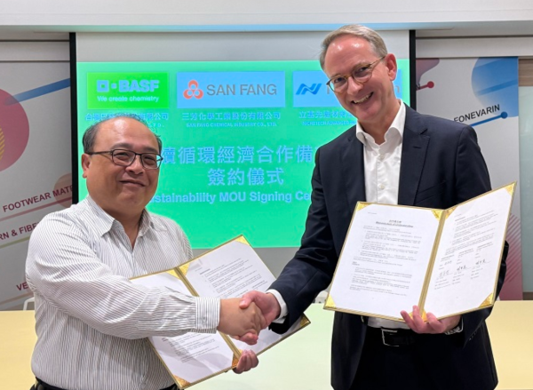 12月11日,巴斯夫、三芳化学工业股份有限公司(简称“三芳化学”)与立基先进材料股份有限公司(简称“立基先进材料”)签署谅解备忘录,旨在共同为鞋业开发可持续解决方案,重点聚焦热塑性聚氨酯(TPU)产品,助力实现共同的 2050 年净零排放目标。